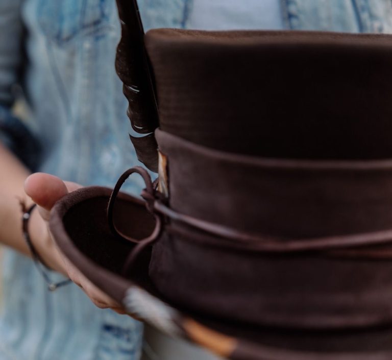 Für den letzten Schliff wähle ich liebevoll ausgewählte Accessoires: eine dezente Gürtelschnalle, ein zartes Seidenband, eine handgefertigte Brosche. Jedes Detail ist bewusst gesetzt, nie zu viel, nie zu wenig und verleiht jedem Hut seine eigene Handschrift.